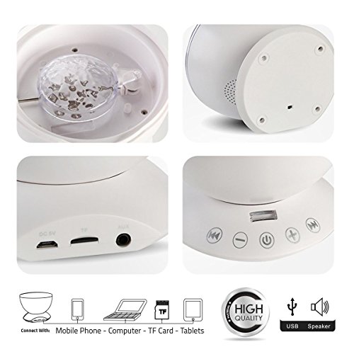 - Built-in Mini Music Player: Equipped with TF card slot (TF card not included) and built-in mini speaker, enjoy lullaby music, relaxing, meditation music while insert TF card or connect with external audio source. And there are four built-in lullaby music: forest insect sounds, ocean wave sea gulls sounds, flowing water birds sounds and merry nature sounds.
