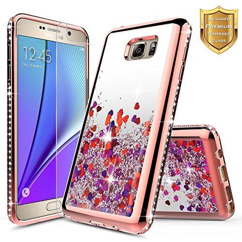 -. Title : Galaxy Note 5 Case with [Tempered Glass Screen Protector], NageBee Quicksand Waterfall Liquid Floating Glitter Flowing Sparkle Bling Luxury Clear Case for Samsung Galaxy Note 5 V SM-N920