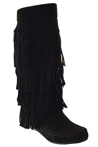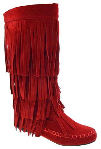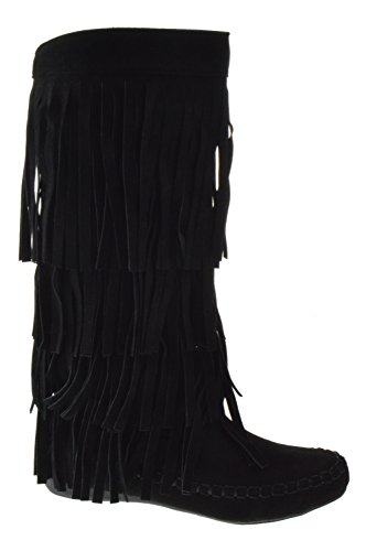Binding : Apparel Product Description The fabulous 4 Layer Fringe boot puts even day-to-day looks in the spotlight. Wear it over leggings and denim or with skirts or shorts and show off the easy movement of this fringe-happy look. A roomy moc toe and slim heel keep the fit nice and simple 0