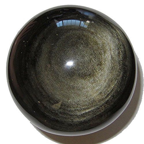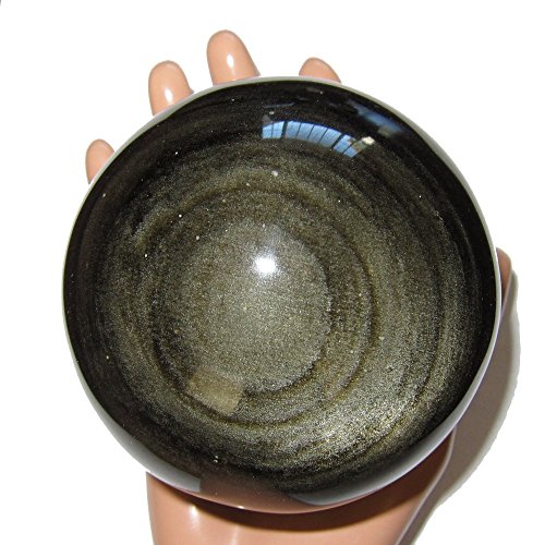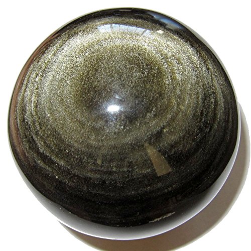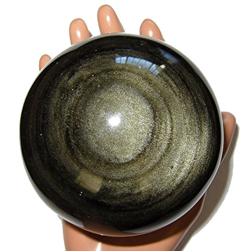 Your large and deluxe sphere is made from obsidian, which is volcanic glass. It appears black in normal lighting, with some white dimples and snowflake markings natural to obsidian. When placed in direct sunlight or very bright lighting, the sphere reveals wonderful gold sheen sparkles. One of a kind protective sphere hand picked by Satin Crystals for you, in a hard to get jumbo size. Receive this exact stone pictured when you order from Satin Crystals.