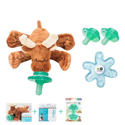 -. Title : Nookums Paci-Plushies Moose Gift Set - Pacifier Holder, Teether and Replacement Pacifier 2 Pack (Plush Toy Includes Detachable Pacifier, Use with Multiple Brand Name Pacifiers)