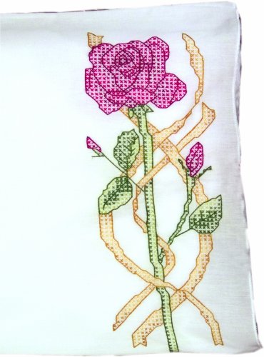 Fairway Needlecraft 83284 Cross Stitch Perle Edge Pillowcases, Long Stem Rose Design, Standard, White