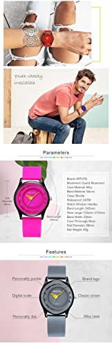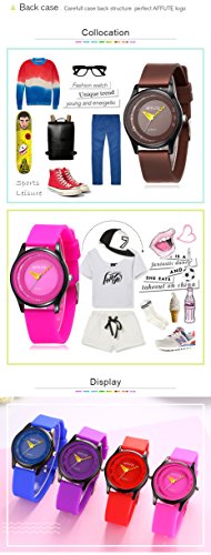 -. Feature : Minimalism: Simple to the extreme as their pursuit,this is a kind of unique design style, the feature is simple and clean, which reflects the elegant taste and ideas. / Appeals to men or women, especially to those who like doing sports, even suitable for the business. / Water resistant to 30 M/99 feet/3 ATM, withstands rain and splashes of water, but not showering or submersion. / 8 colors available,Diameter 38mm ,Dial thickness 8.25 mm,Net Weight:40g.Suitable Length 155-210mm. / High Quality Silicone Strap,Non-toxic, Non-taste,Excellent Watch for Summer as a gift .