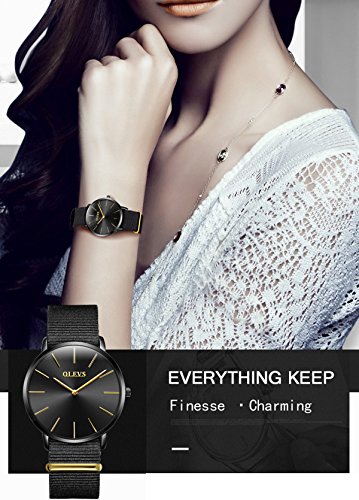 -. Title : OLEVS Watches 2pcs Couple Set Nylon Strap Big Face Dress Quartz Wrist Watch, Pure Black Canvas Band Watch