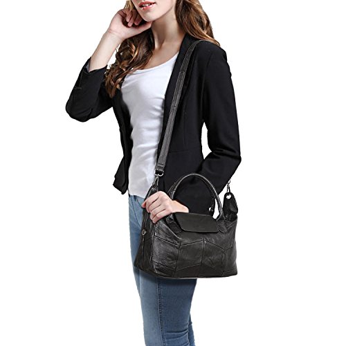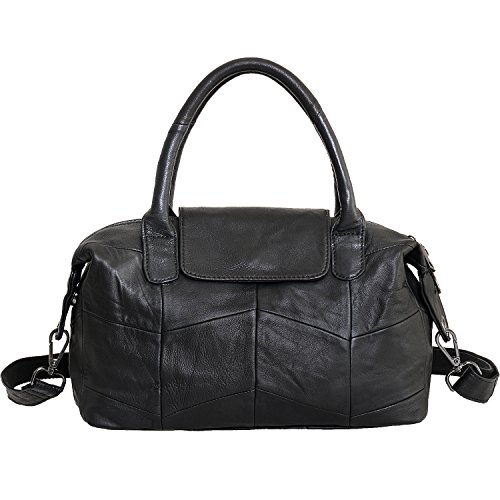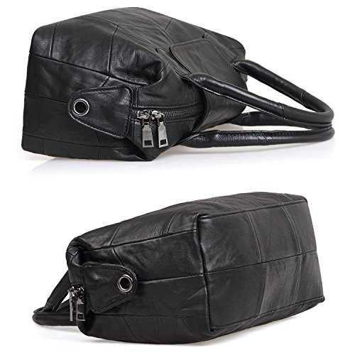 -. Feature : Design: real sheep leather / black color / durable hardware / polyester lining/ top zipper with flap closure / stylish belt style handbag. / Carry styles: top handle bag / crossbody bag / shoulder bag / satchel / tote bag / Dimension:(L*H*W)30*22*13cm/12"*8.66"*5" removable shoulder strap: long enough to be carried as crossbody bag/ compartments:,1*interior zip pockets, 2*item slots,1*exterior pocket / Occations: basic daily use / dating / schooling / amusement park / 【Jack&Chris】is a trademark registered in the US, UK and etc. Our brand has gained recognition and protection from amazon. We will not allow any forms of infringement. Please pay attention to avoid purchasing counterfeits from other seller.