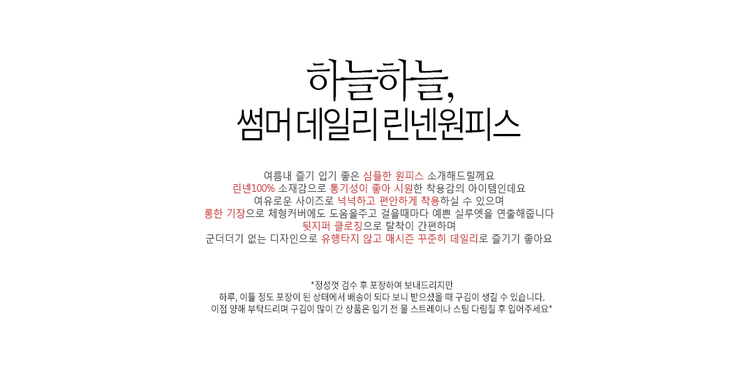 린넨 소재 특성상, 실 뭉침이나 잡사가 발견될 수 있으니 참고 바랍니다