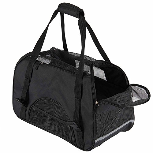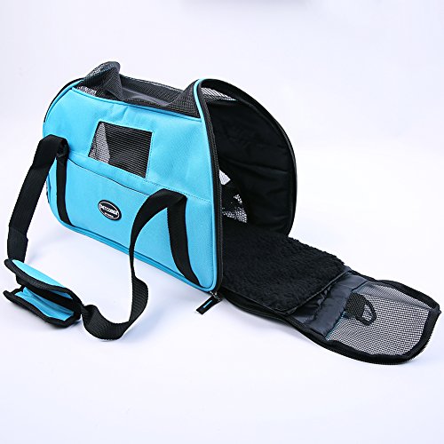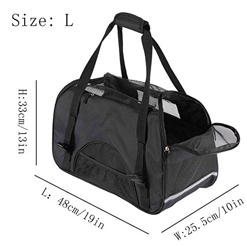 -. Feature : ✿ THE BEST MATERIAL FOR YOU: The pet carriers use high quality oxford fabric material and interface handle, strong and durable, the handle sewing technology using the inside and outside edge. / ✿ A SUITABLE SIZE: 19"(L) * 10"(W)* 13"(H), please measure your pet's height and width P.R.Ior when you select this dog carrier. / ✿ SO EASY TO CLEAN: Having high quality soft pad, let the inner more comfortable for your pet, and it can remove when the pad is dirty, you can wash it by washing machine. / ✿ THE BEST BREATHABILITY: This pet bag has the breathable mesh and built-in safety buckle, you can put it buckles in pet collars, fresh air through breathable mesh, so that your pet can breathe freely, the buckle can prevent the pet scurry in the dog carriers. / ✿ THE BEST CONVINENT TO CARRY :All around and the top has the polyester mesh fabric, ventilation, and it allows your pet to see the scenery outside, have a pocket on the back of the bag, and you can put your pet's snacks or toys in it.