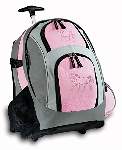 -. Title : Pink Horse Rolling Backpack Horses Wheeled Travel Bag School Trolley Bags Horse