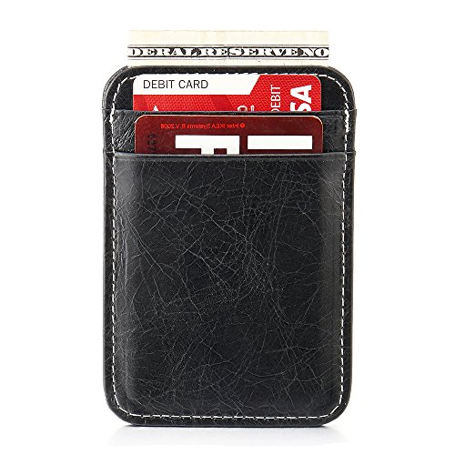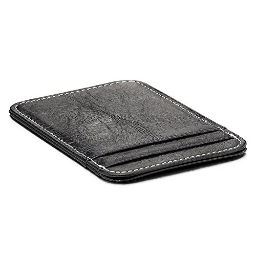 Product Description *Material: Genuine Leather; *Color: Black *Measures: 4.25x2.87x0.18inch *Double-sided; Offers a total of 4 card slots, 2 on each side; Middle pocket for cash or cards *Slim thin. Perfect to slip into your pocket, briefcase or handbags *Timeless style for both men and women