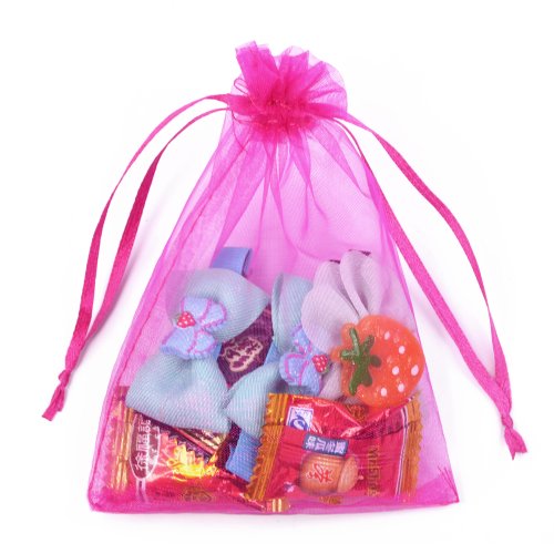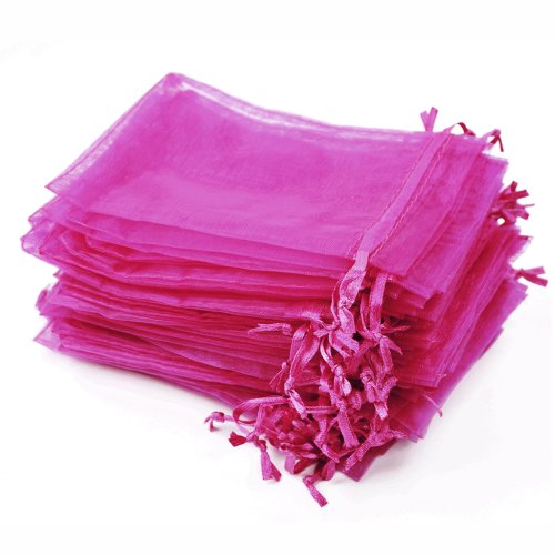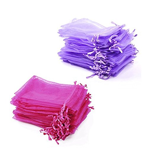 Bluecell Pack of 50 Hot Pink+Pack of 50 Purple color Organza Drawstring Gift Bag Pouch Wrap for Party/Game/Wedding (4.7x3.5inches)