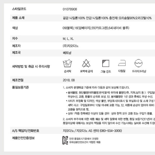 프리미엄 다운으로 솜/깃털의 함량을 90/10로 하여 더욱 따뜻하고, 다운팩이 없이 더욱 가볍습니다베이직핏으로 아우터 안에 레이어드 하거나, 간절기 시즌에는 아우터로 착장하여 여름을 제외한 모든 계절에 입기 좋습니다