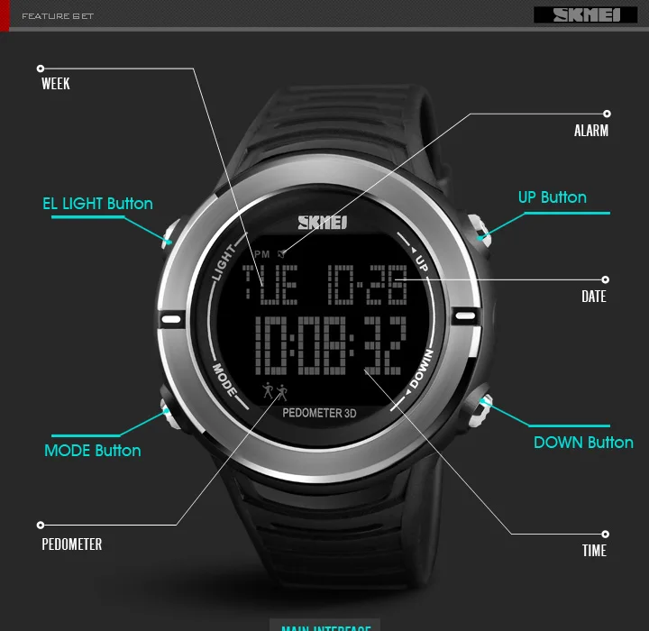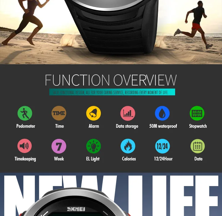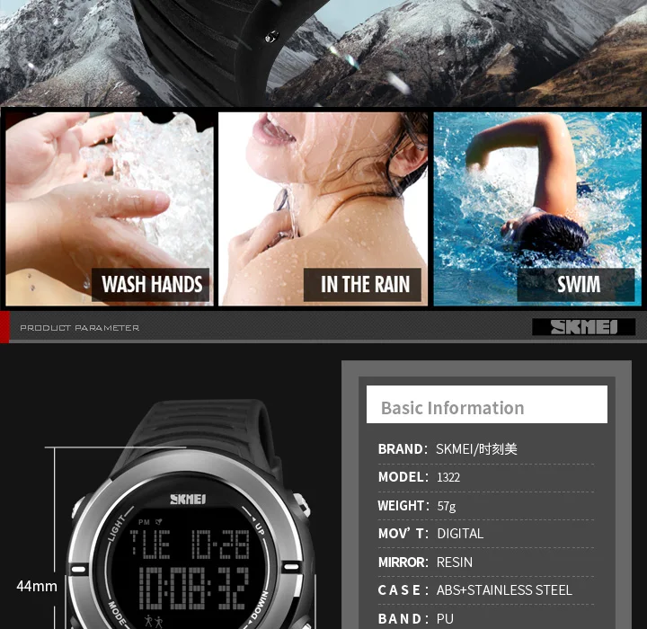 Feature:Water Resistant,Stop Watch,Back Light,Alarm,Swim
