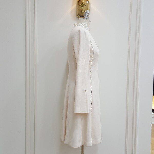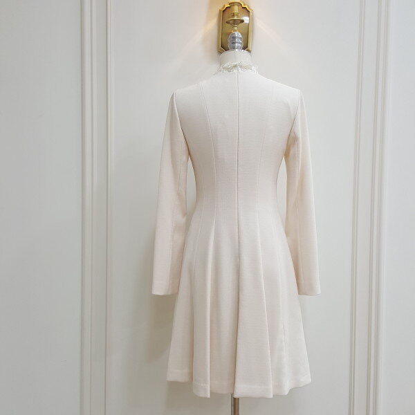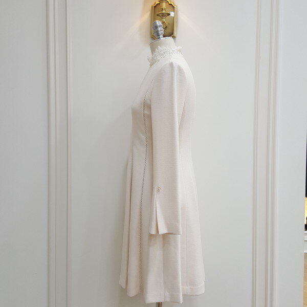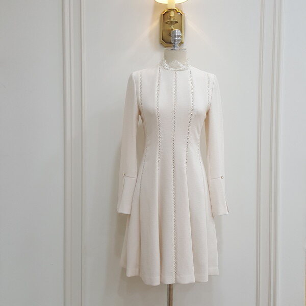 절개 사다리 띠레이스와 네크 레이스 배색감이 포인트인 깔끔한 느낌의 A라인 데일리 원피스.