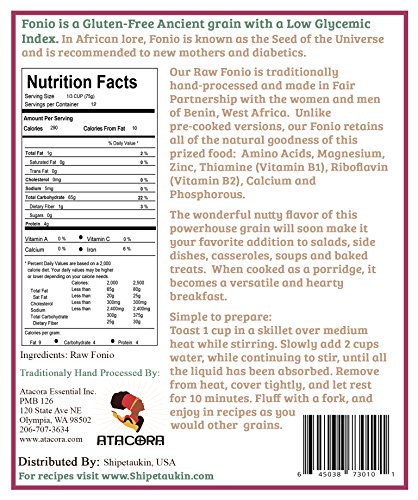 Clean, pure, not pre-cooked and requires NO rinsing; Fonio is a rare, gluten-free ancient grain from the millet family prized for its flavor, easy digestibility, and tolerance by diabetics.