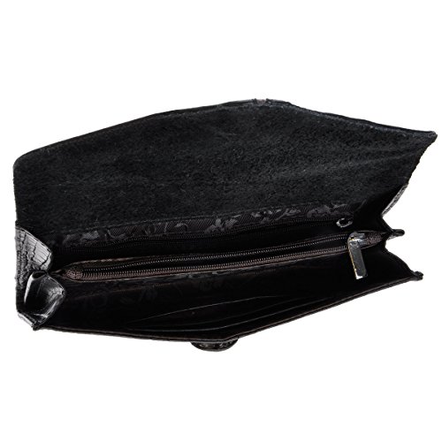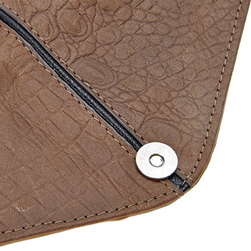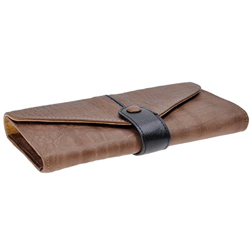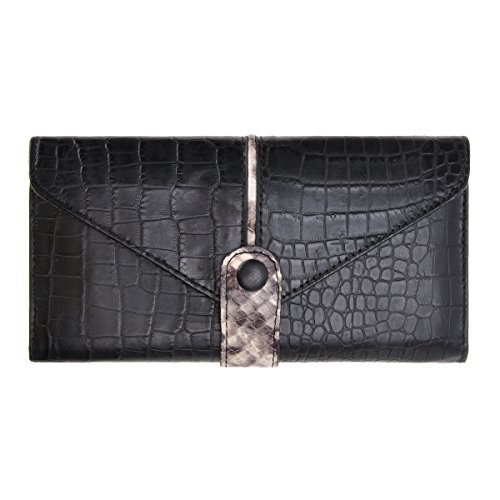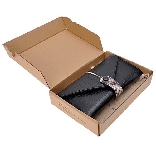 Product Description Material:genuine cow leather, polyester lining. Size: dimensions approximately 7.5 x 3.9 x 0.6 inches / 19 x 10 x 1.5 cm. This wallet was made by hand. It is made of genuine leather, high quality. Snake-embossed leather and foldover design looks very stylish. Contains 2 bill slots, 2 individual zippered slots, 4 card slots.It can also fit your cell phone. This fashion wallet is a very useful accessory brightening up your look, can act as a gift. Dust bag and gift box included.Don't wash or dry clean! Use a wet rag to rub it gently when it gets dirty. Season: all seasons Style: Classic / Fashion / Vintage Fashion Elements: snake-embossed, belt design, two-tone Package Content: 1 x Wallet