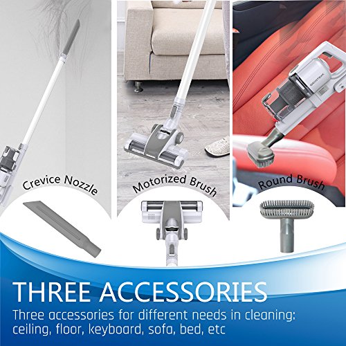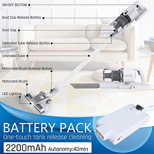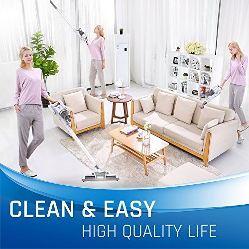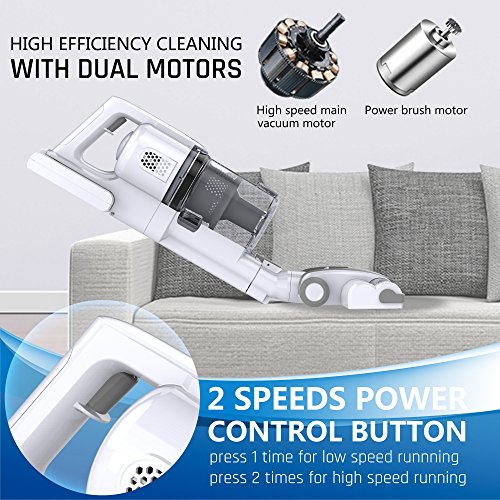 Two different Powerful Suction:Two motors design make cleaning highly efficient and allows for easy and thoroughly cleaning ,The Powerful suction captures more microscopic dust,also Two different power speeds for all your needs,Press once for the moderate speed press,and twice for a higher power speed