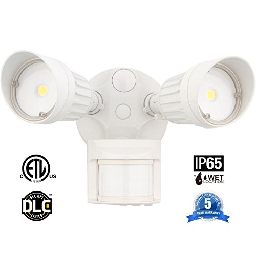 Dual Head 20W LED Outdoor Security Light with Motion Sensor, Dusk-to-Dawn, 150W Incandescent Replacement 1900 Lumens, 5000K Daylight Floodlight for Porch, Entryway, ETL and DLC Certified, White