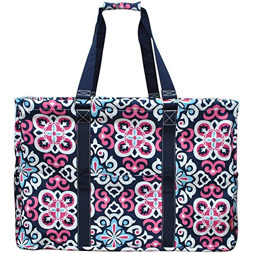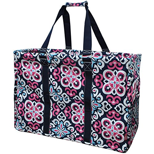 Product Description Mega Utility Tote Perfect for Picnics, the Beach, shopping or at Home. Fits all your groceries and keeps them secure with the Top Zipper closure. Great size to fit everything with Dimensions of 24 x 10 x 17 and easy to clean Wipe Clean Interior 0