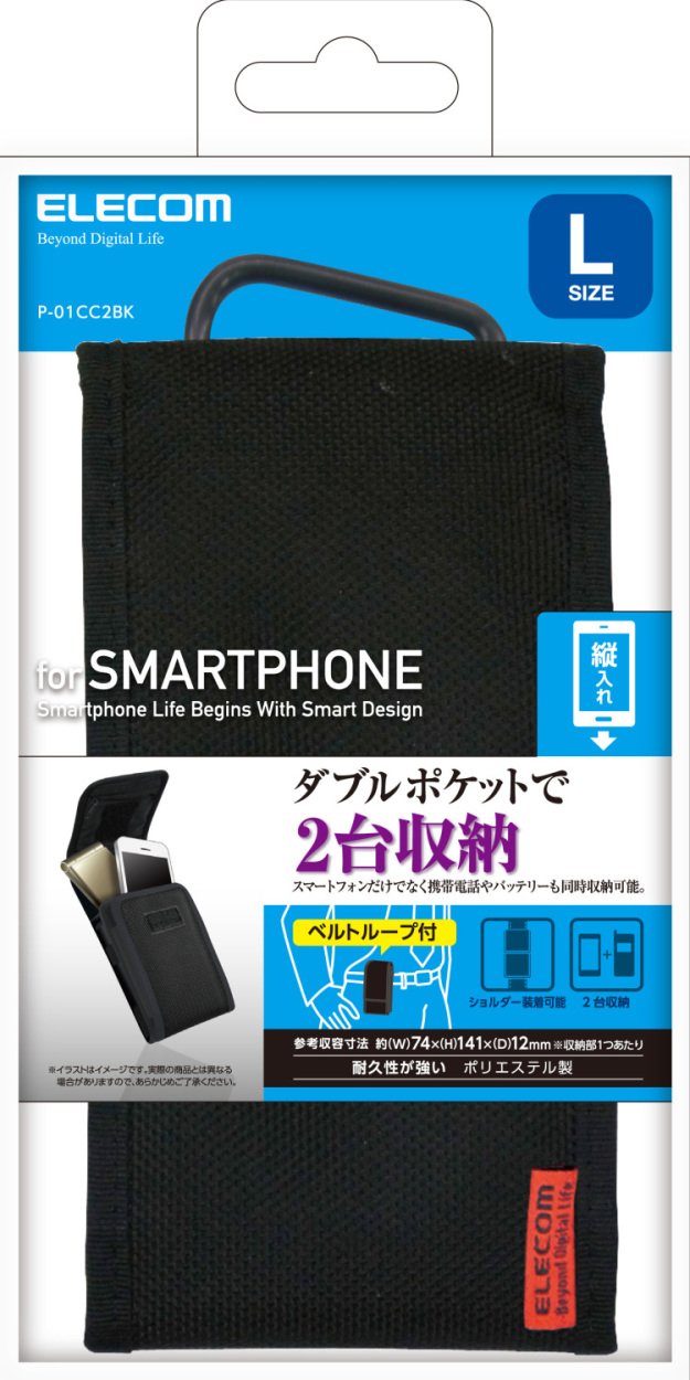 - It is a casual case for a smartphone that can choose three ways of attachment as necessary by a belt loop, a shoulder belt loop, a carabiner.