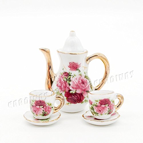 -. Feature : Scale: 1:6 Dollhouse Kitchen Miniature / Including: 1x Teapot, 1x Sugar Bow, 1x Creamer, 1x Tray, 2x Cups, 2x Dishes (Not Including Other Items) / Approx. Size (LxWxH): Teapot 4.4x2.6x5 cm - 1.7x1x2 inch / High Details and Workmanship: For Dollhouse Decor of Kitchen, Diningroom, Livingromm, Restaurant, Bar etc. / Teapot and sugar bowl both have a lid, and the lids are removable.