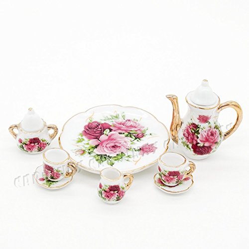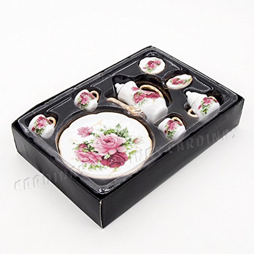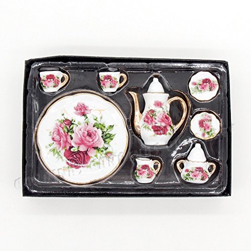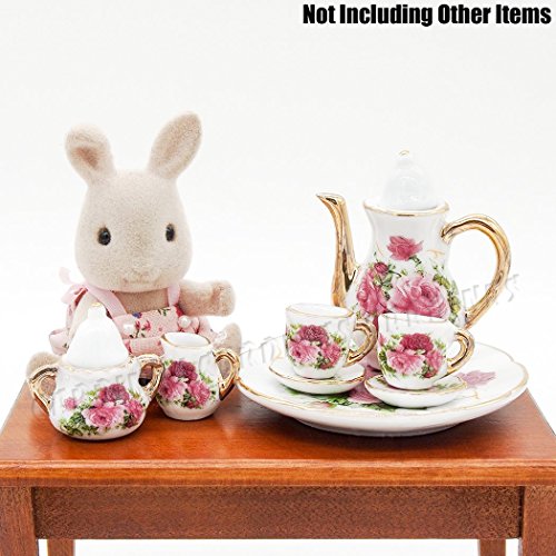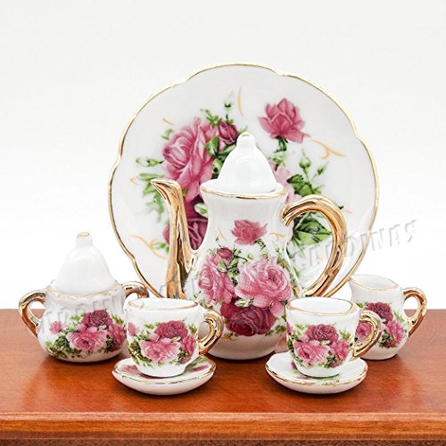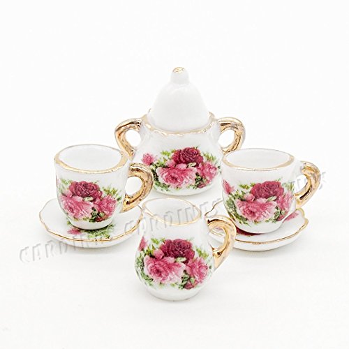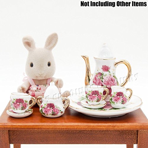 -. Title : Odoria 1:6 Miniature 8PCS Porcelain Tea Cup Set Pink Rose Chintz with Gold Trim Dollhouse Kitchen Accessories
