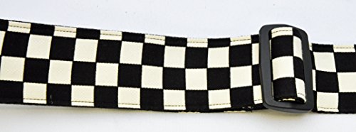 Product Description2" wide Woven strap with leather ends, Black Checkered0