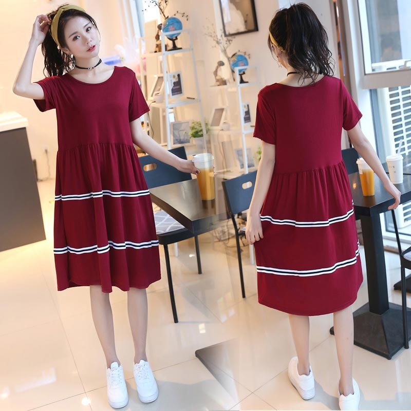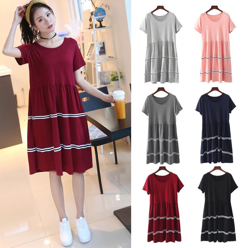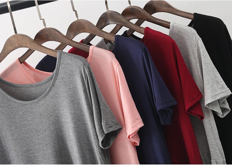 ソフトで肌触りの良いモダール素材の半袖・ラウンドネック・ひざ丈のワンピース♪