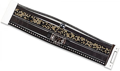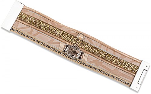-. Feature : mit funkelnden eingefassten Glitzersteinen und glänzender verschiebbarer Spacer Perle / magnetischer Verschluss zum einfachen schließen und für angenehmen Tragekomfort / weicher, edler Armschmuck zum einmaligen umwickeln / Länge x Breite: ca. 21,5 x 4 cm / elegantes Design im Vintage Look