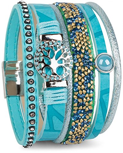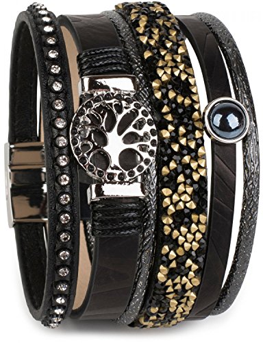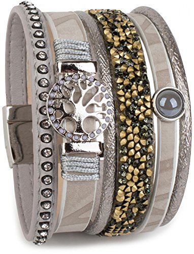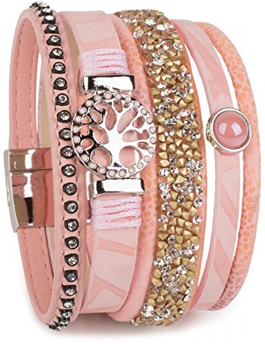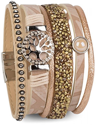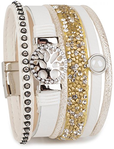 -. Title : styleBREAKER Armband mit Lebensbaum Amulett, Perle, Strasssteine, Glaskristalle, Magnetverschluss, Damen 05040042