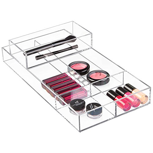 mDesign Cosmetic Drawer Organizer for Vanity Cabinet to Hold Makeup, Beauty Products - 4" x 8" x 2", Clear