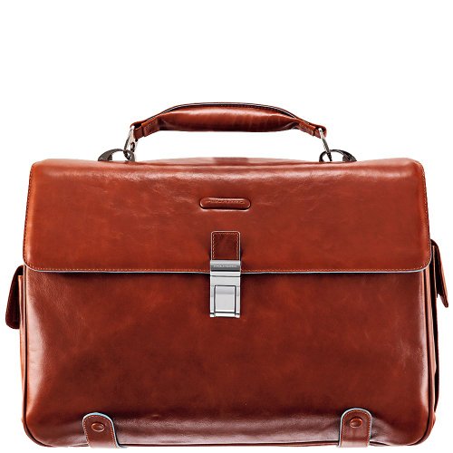 -. Title : Piquadro Brief Case with 2 Gussets In Leather