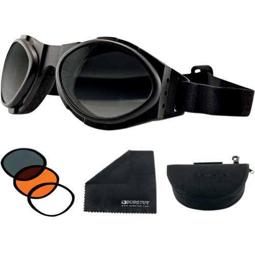 -. Title : Bobster Bug-Eye 2 Interchangeable Cruiser Motorcycle Goggles Eyewear - Black/Smoke/Amber/Clear / One Size Fits All