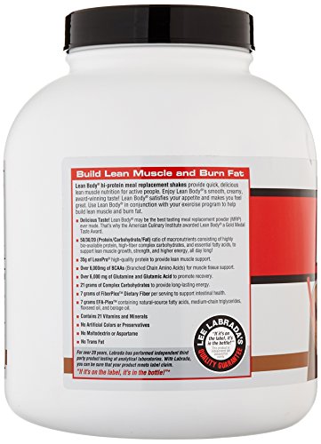 ReleaseDate : 2017-04-15 Studio : Labrada Publisher : Labrada Binding : Health and Beauty Product Description Lining your cupboards with superior protein is easier than ever with Lean Body in a Jug. Each serving floods your system with 35 grams of highly bioavailable proteins to nourish muscles and promote increased size and strength. The LeanPro blend is a proprietary mix of fast-release and slow-release proteins, to give you a sustained flow of vital amino acids that will support better workouts and more noticeable gains. Added to the Lean Body protein mix is 21 essential vitamins and minerals, essential fatty acids, and only six grams of sugar. You also get seven grams of fiber for healthy digestion, glutamine to help avoid muscle breakdown, and other powerful ingredients. All this in a formula that's free of maltodextrin, artificial colors, preservatives, or Trans fat. 0