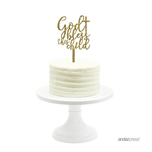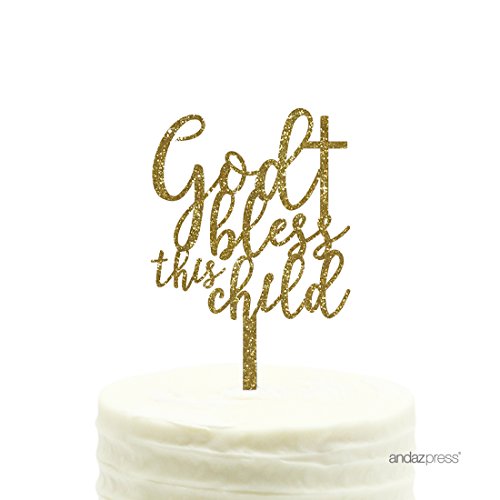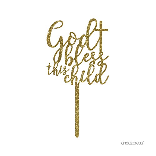 Andaz Press Baby Baptism Acrylic Cake Toppers, Gold Glitter, Bless This Child, 1-Pack