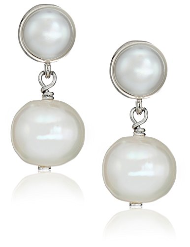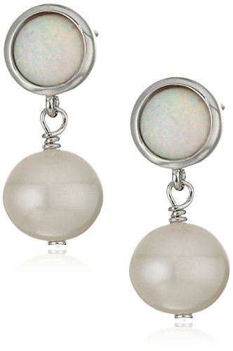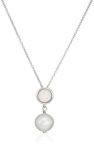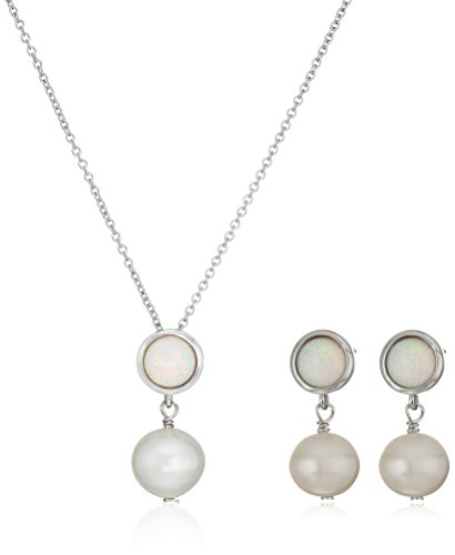 -. Title : Sterling Silver Birthstone and Freshwater Cultured Pearl Drop Post Earrings and Pendant Necklace Jewelry Set