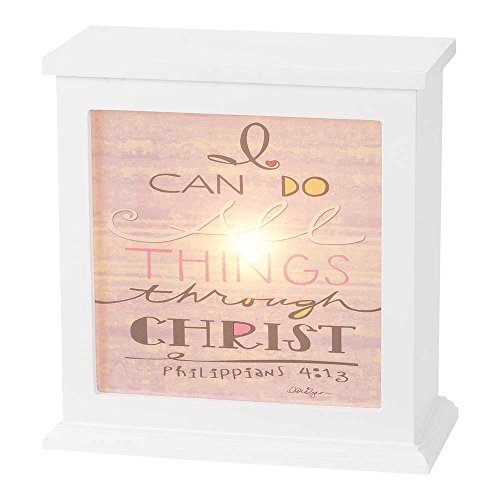All Things Through Christ Philippians 4:13 Pink 8 x 8 Wood Box Night Light Table Top Decoration