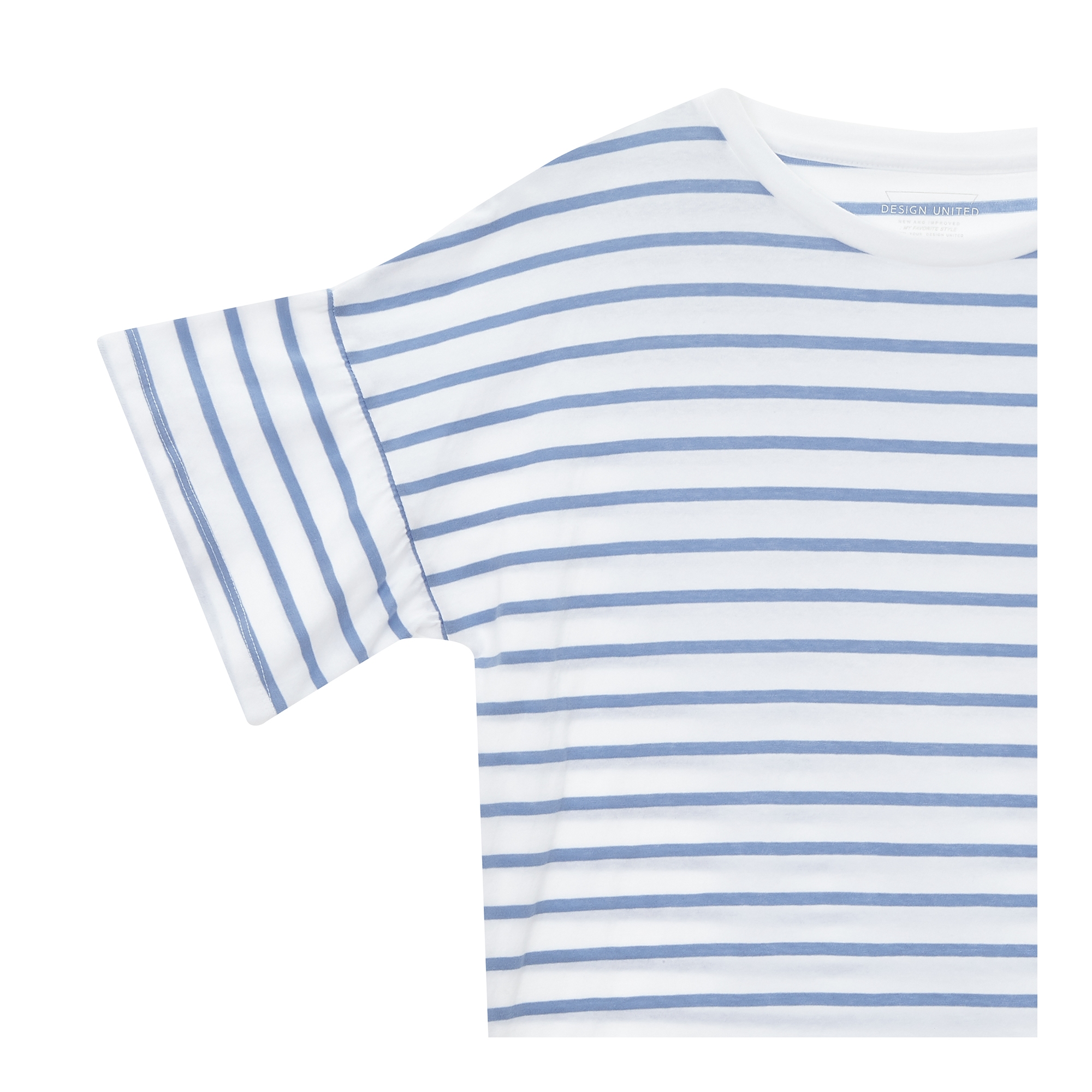 컬렉션 : 2018 Spring/Summer 디자인 포인트 : - 스트라이프 패턴 디테일이 돋보이는 캐주얼한 무드의 반팔 티셔츠- 소매 셔링 디테일로 귀여운 느낌을 더해주는 디자인- 30수 싱글 코튼 소재로 가볍고 편안한 착용감을 선사하는 아이템 스타일링 추천 : 다양한 워싱의 데님팬츠 혹은 슬랙스 팬츠와 캐주얼한 스타일링을 연출 할 수 있음