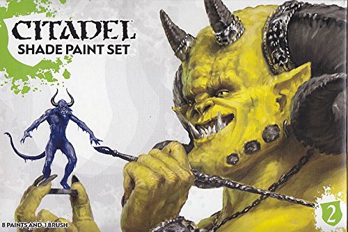 -. Feature : Become a painting daemon with the Citadel Shades. / Citadel Shade Paint Set contains 8 pots of Citadel Paint / The set also includes 1 Wash Brush. / 1 Nuln Oil, 1 Carroburg Crimson, 1 Drakenhof Nightshade, 1 Biel- tan Green, 1 Casandora Yellow, 1 Agrax Earthshade, 1 Reikland Fleshshade,1 Seraphim Sepia. / Officially licensed merchandise.
