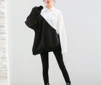 -. Feature : モノトーンのシャツとスウェットのドッキングトップス / シンプルながらも個性的なデザイン / オーバーサイズなので、ユニセックスコーデにぴったり / シンプルカラーなので、どんなアイテムとも相性抜群 / 【サイズ展開】XS、S、M、L