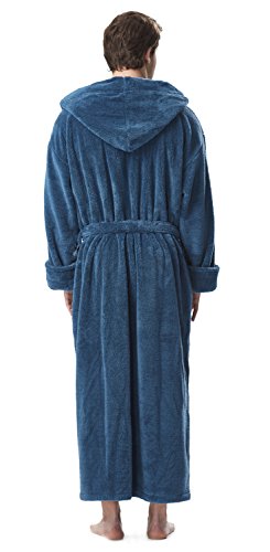 Arus Men's Fleece Robe, Long Hooded Turkish Bathrobe, Ocean, L/XL