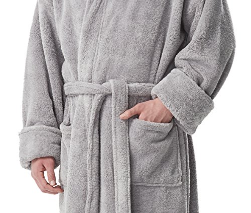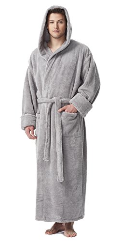 Arus Men's Fleece Robe, Long Hooded Turkish Bathrobe, Steel Gray, L/XL