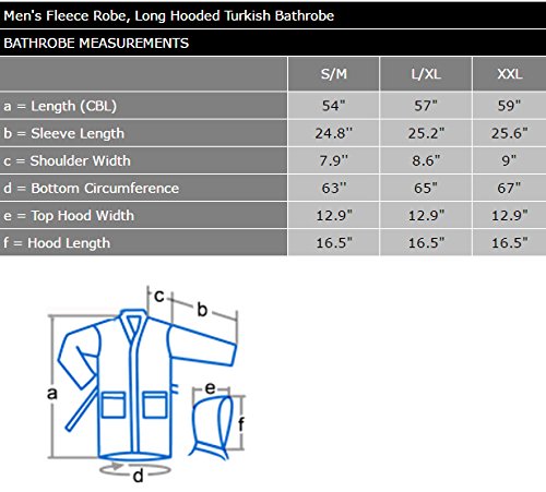 Arus Men's Fleece Robe, Long Hooded Turkish Bathrobe, Ocean, XXL