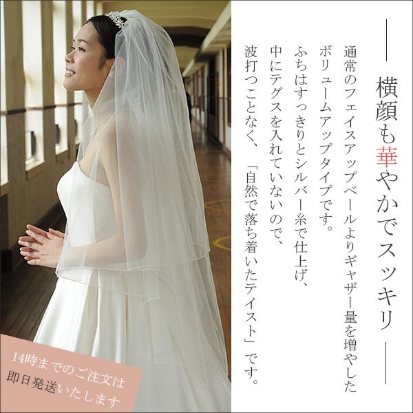⇒ ★同じデザイン・長さ250cmロングベール [V98] ⇒ ★同じ長さ・リバーレースのフェイスアップベール [V19] ⇒ ★コーディネートにおすすめのネックレス [N66] |