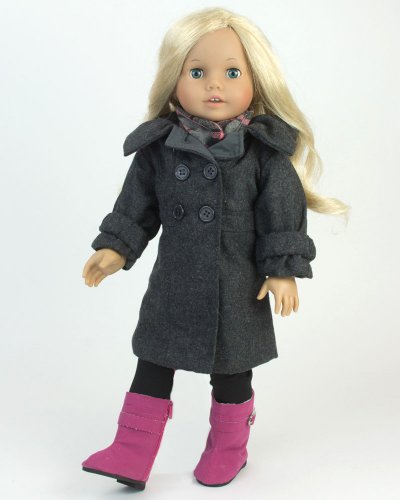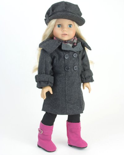 - Title : Doll Dress Coat fits American Girls Dolls, 4 Pc. 18 Inch Doll Coat/Clothing Set Includes Stylish Gray Coat, Doll Hat, Plaid Scarf & Hot Pink Doll Boots