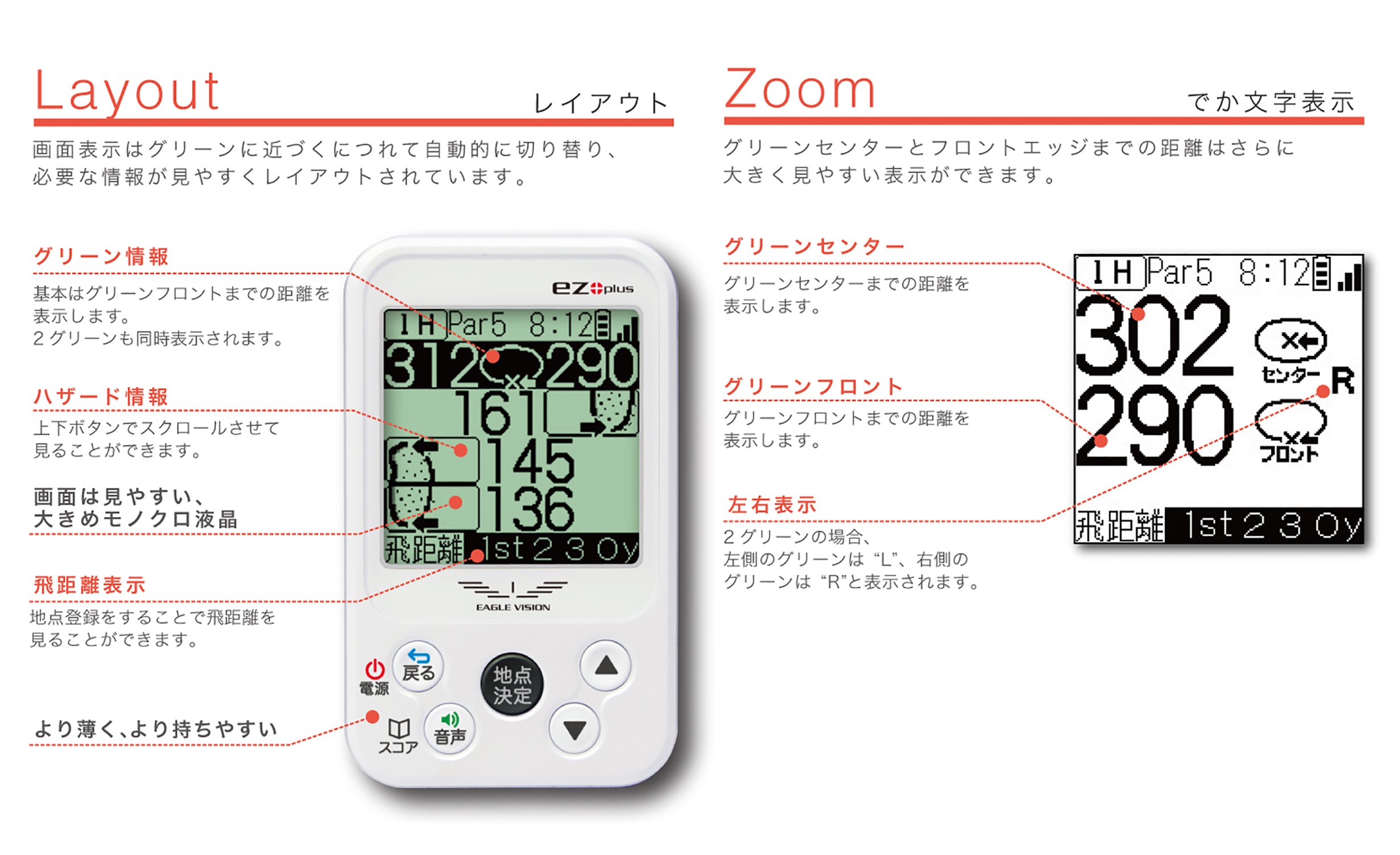 "Easy navigation" with easy-to-see and easy operation.