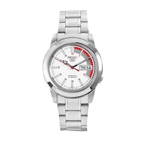 -. Title : Seiko Men's SNKK25 5 Stainless Steel White Dial Watch