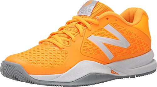 Hold court in the New Balance WC996v2 sneaker, your tennis game's ace in the hole. Made from breathable synthetic and mesh, this women's cushioning tennis shoe includes a full-foot TPU cage to allow excellent flexibility atop the lightweight REVlite� midsole. PROBANK guides foot positioning during nimble lateral movements. The New Balance 996 tennis shoe sits atop an Ndurance� rubber compound outsole for grip you don't have to think twice about.Feature