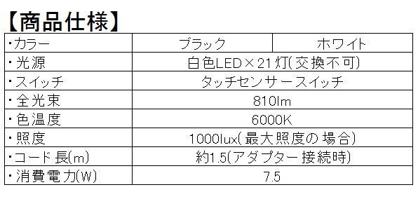 ライト部は折りたたみ式なので、不使用時にはコンパクトに収納できます。タッチセンサースイッチを採用し、触れるだけですぐに点灯します。スイッチは調光式ですので、明るさを7段階で調節することができます。 |
