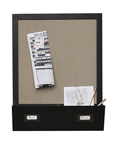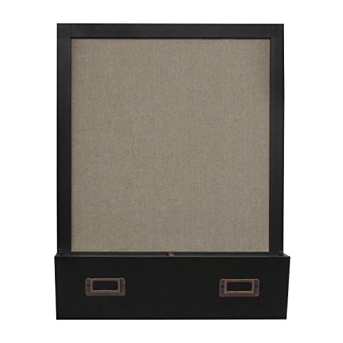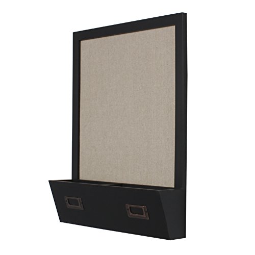 DesignOvation Decorative Wall Wood Home Organizer with Fabric Pin Board & Two Cubbies, Black (209332)