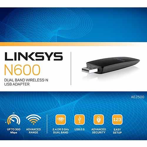 -. Title : Linksys N600 Dual Band Wireles-N USB Adapter AE2500
